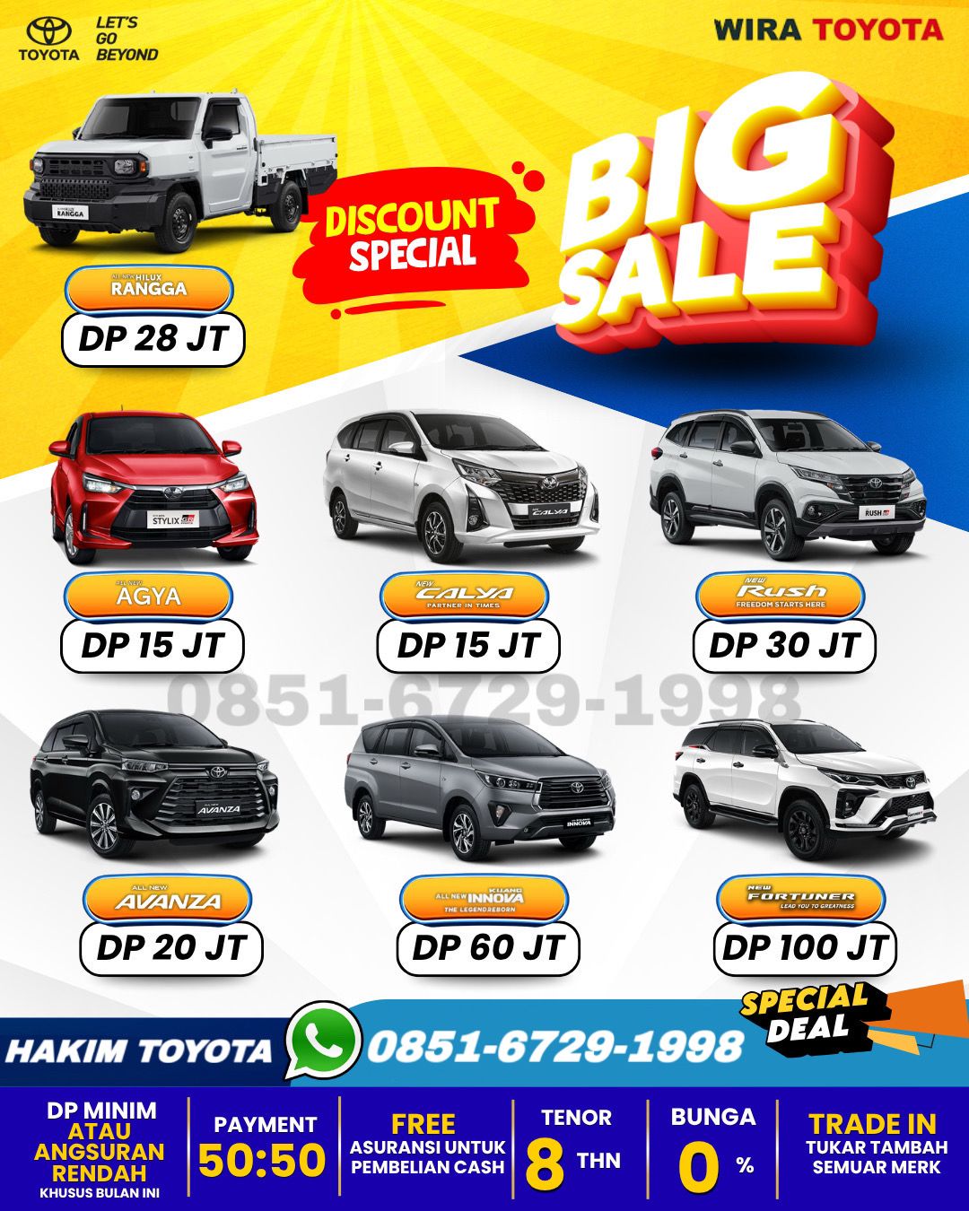 Promo DP Ringan untuk Kredit Toyota Agya, Calya, Avanza, Rush, Innova, Zenix, Fortuner dengan Diskon terbesar se-Banjarmasin.